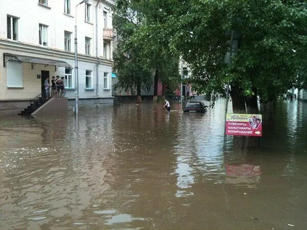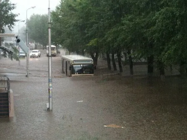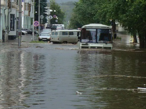 According to local residents, the rain began in the city at 12.00 and lasted till about 18.00: "It rained for about five hours. It was a sheeting rain. As a result, the whole town was flooded. The central street of the city was flooded completely. Several cars were also under water. Beside it was hailing".