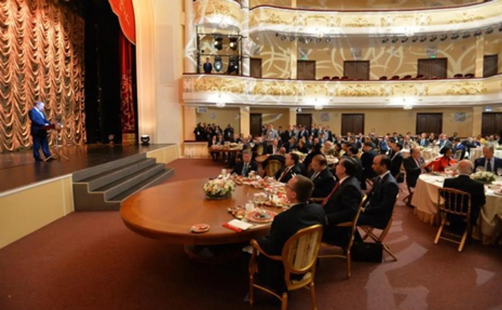 UFA, 10 July 2015. /Bashinform News Agency, Alim Faizov/. The night before, Ufa hosted an official reception on behalf of the President of the Russian Federation in honour of the leaders of the delegations - participants of the BRICS Summit and the Summit of the Council of heads of states of the Shanghai Cooperation Organization, which was attended by the Head of Bashkortostan Rustem Khamitov.