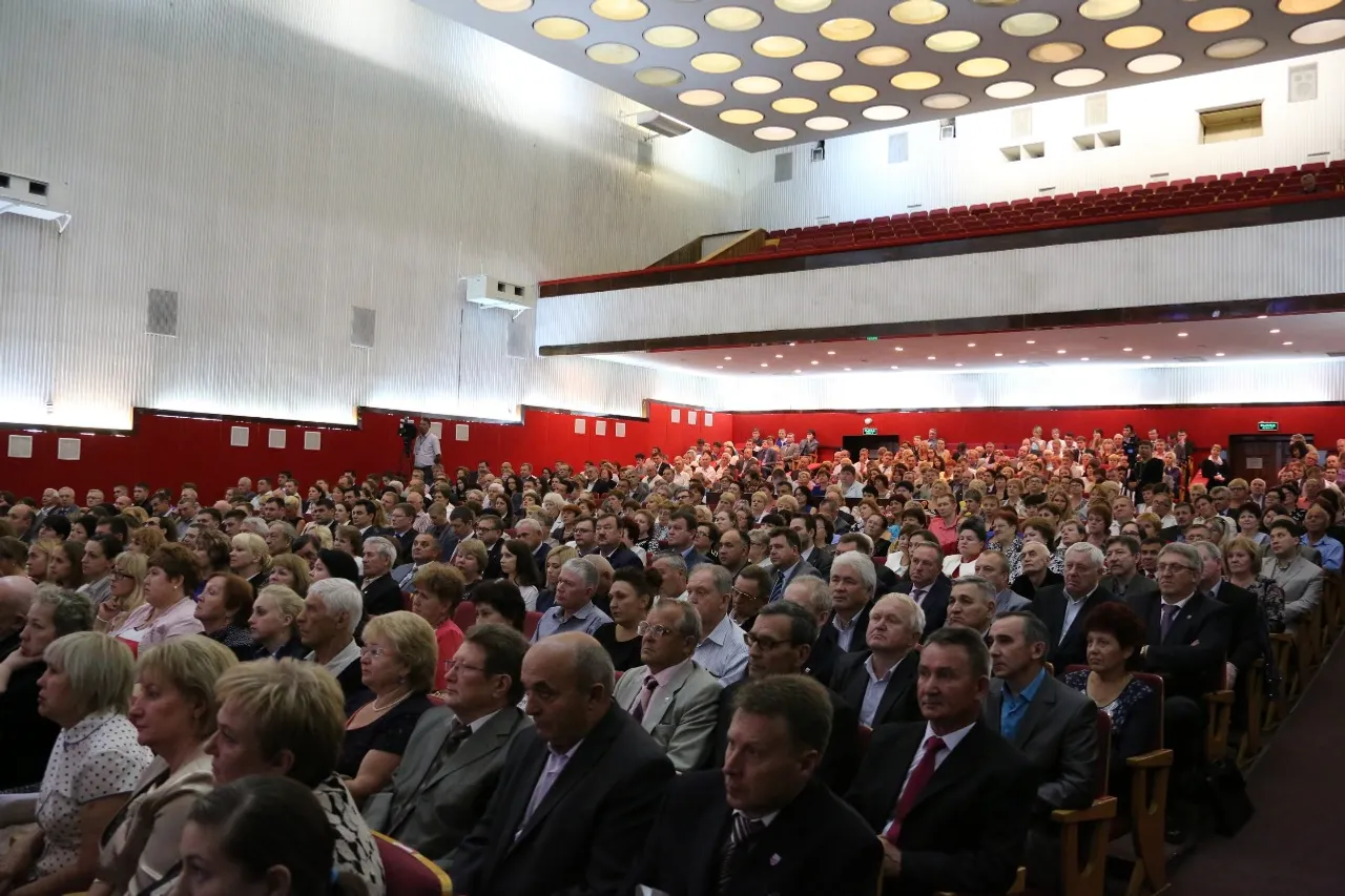 UFA, 16 July 2015. /Bashinform News Agency, Iliya Spiridonov/. On July 16, in Ufa the Head of Bashkortostan Rustem Khamitov congratulated the staff of JSC "Ufa Engine Industrial Association" (UMPO) on the 90th anniversary of the company’s foundation. The solemn meeting in honour of the UMPO anniversary was held in the "Motorostroitel" Palace of Culture.