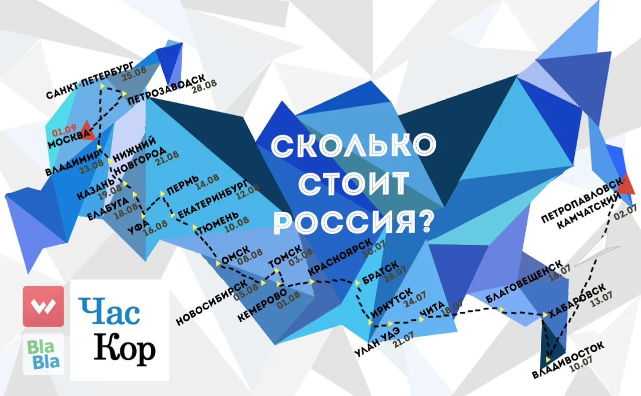 During the two summer months - July and August, journalists of the agency will travel all over the country from Kamchatka to Karelia, visit the sights of the cities, examine socio-economic indicators of development, cultural and national features, evaluate the real cost of housing, food, fuel, entertainment, study features of life and way of people communication. The travel itinerary includes 22 cities, including Novosibirsk, Irkutsk, Krasnoyarsk, Yekaterinburg, Perm, Kemerovo, Ufa, Kazan.