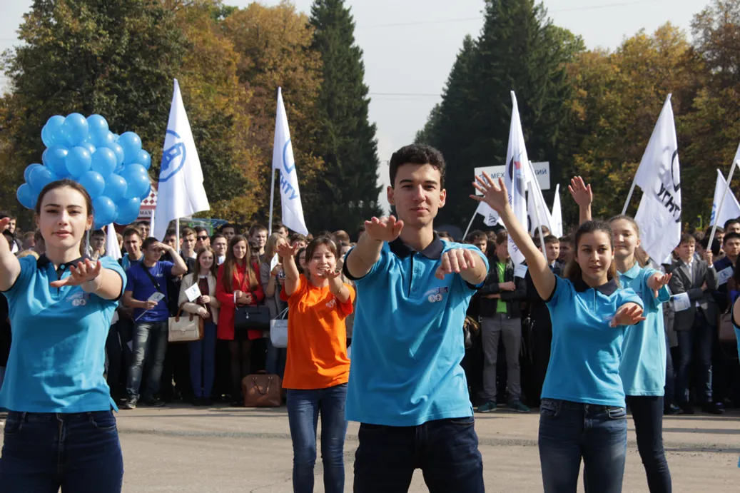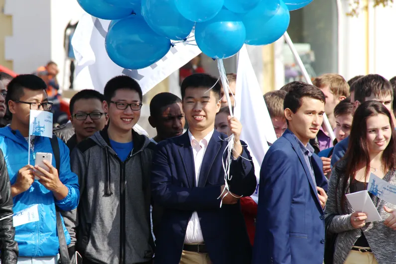 UFA, 11 September 2015. /Bashinform News Agency, Elmira Sabirova/. In Ufa, more than one thousand students of Ufa State Petroleum Technological University (USPTU) took a festive march through the streets of Ufa, where they were welcomed by the head of Ufa administration Irek Yalalov, Rector USPTU Ramil Bakhtizin and other guests.