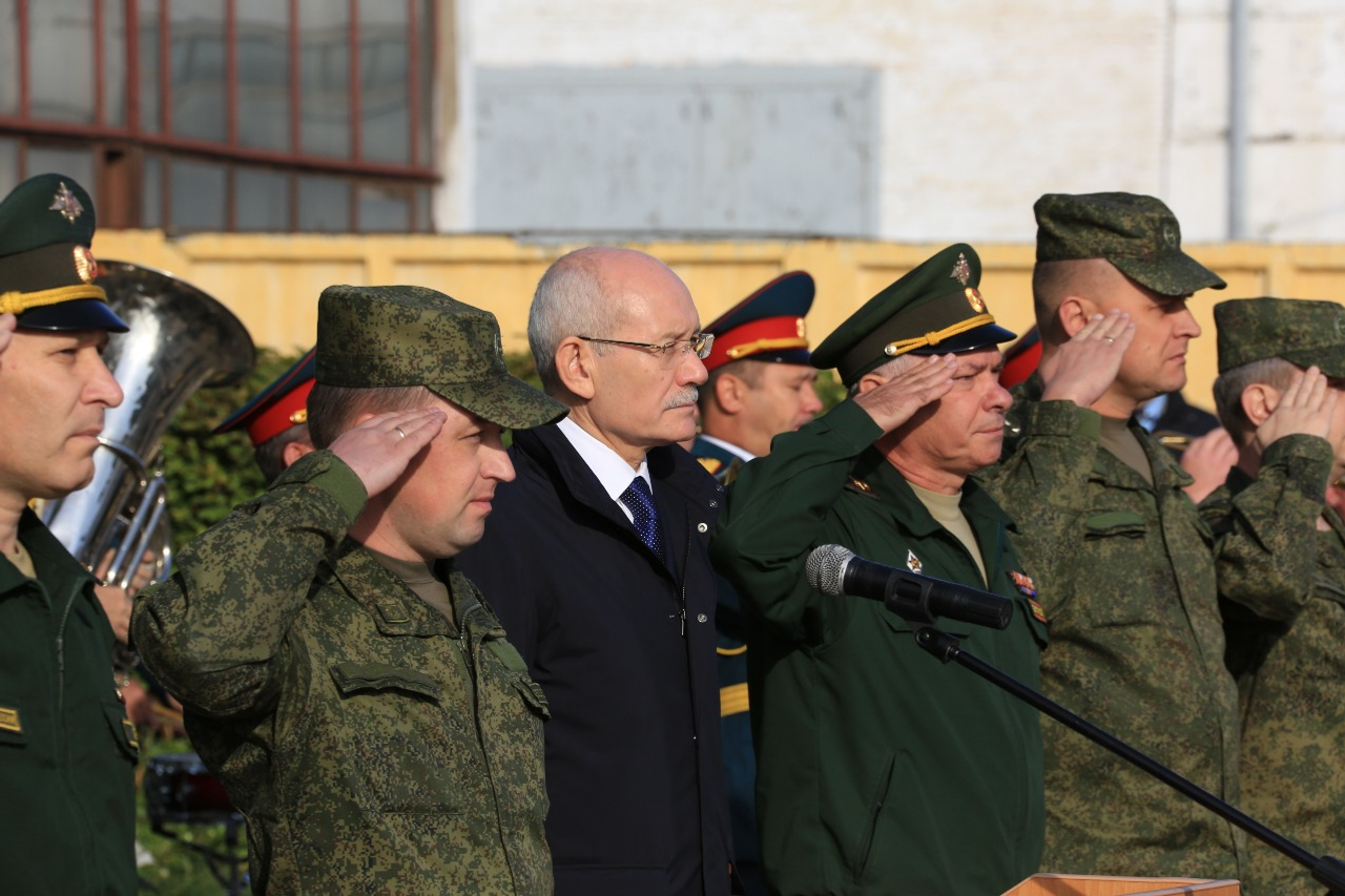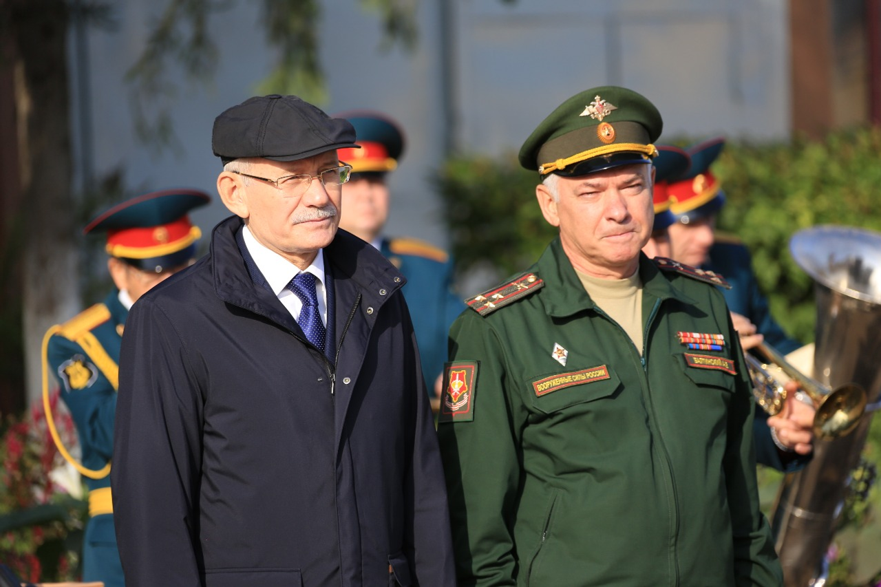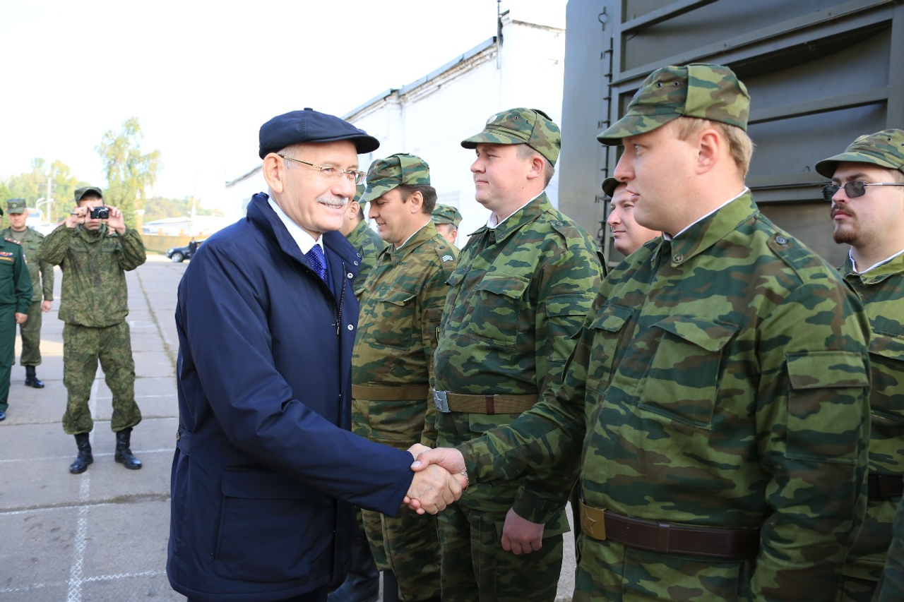 UFA, 16 September 2015. /Bashinform News Agency, Iliya Spiridonov/. On September 16, in Ufa, the Head of Bashkortostan Rustem Khamitov delivered a report at a meeting dedicated to the end of the strategic command-staff exercises "Centre-2015", which have been taking place at the Central Military District since September 7.