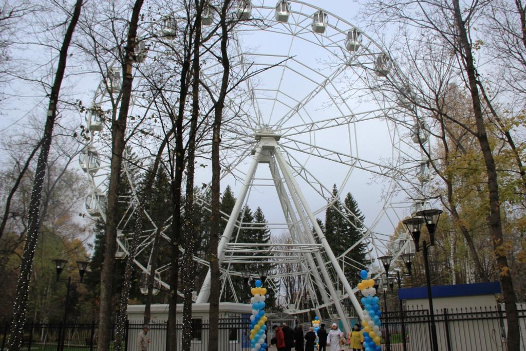 Recall that a year ago the largest observation wheel in the country intended for year-round use appeared in Ufa. The height of the attraction ride is 48 m. You can ride the wheel in any weather. 24 glass-enclosed gondolas have air-conditioning and heating. The wheel makes a full turn for six minutes, the total capacity is 144 people.