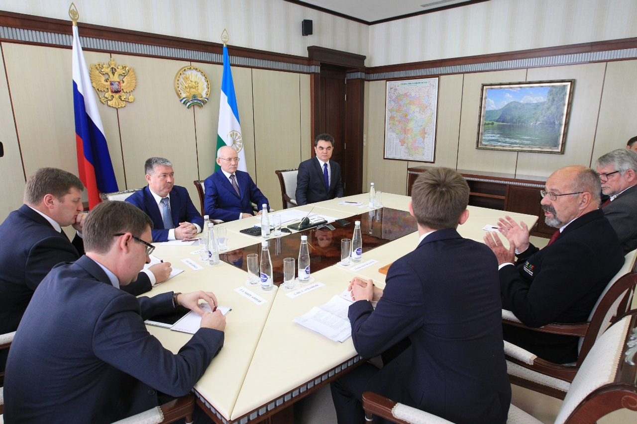 UFA, 5 May 2016. /Bashinform News Agency, Alexander Smirnov/. On May 5, at the House of the Republic the Head of Bashkortostan Rustem Khamitov met with the President of the Committee of the International Children's Games Torsten Rasch. They discussed the readiness of Ufa as a candidate to host the Summer International Children's Games in 2019.