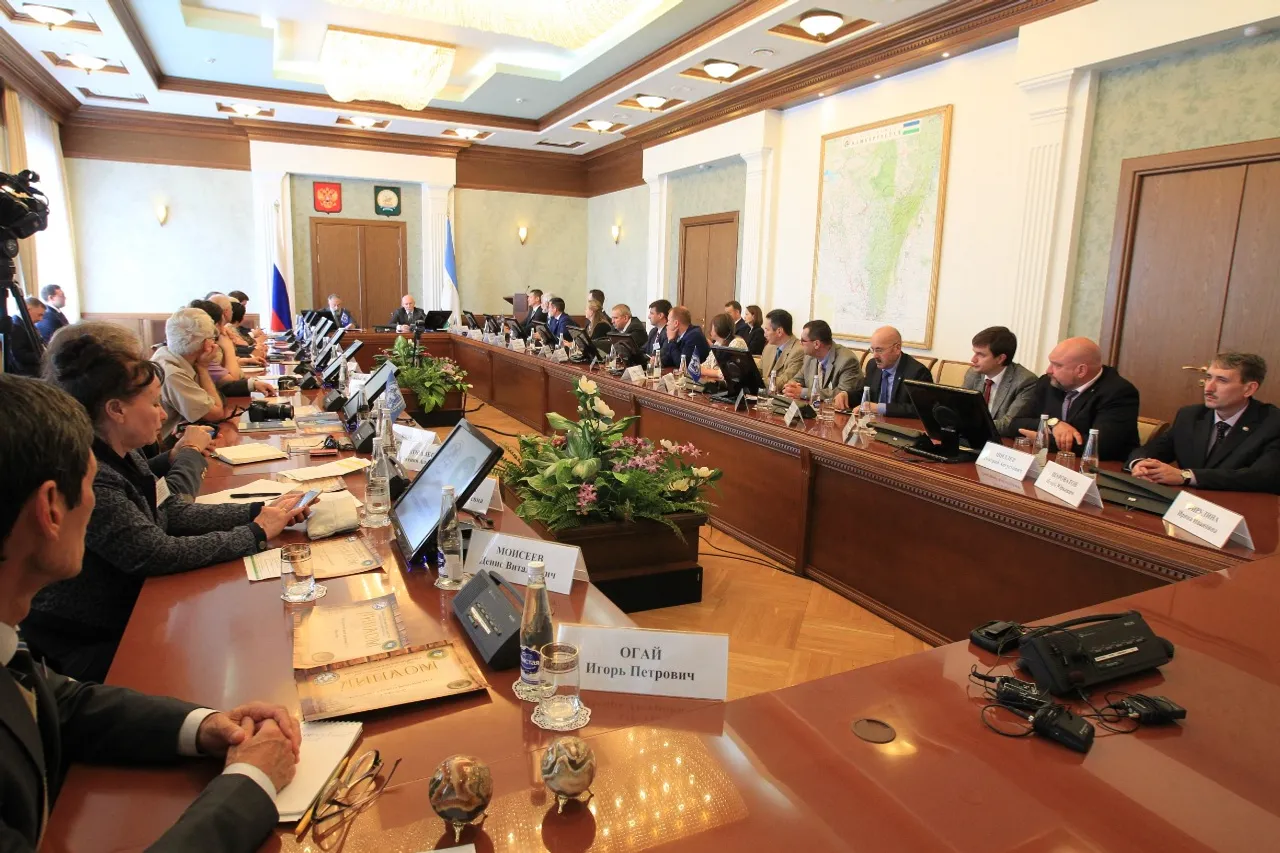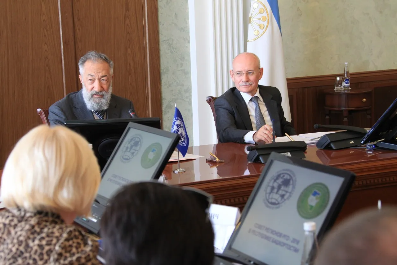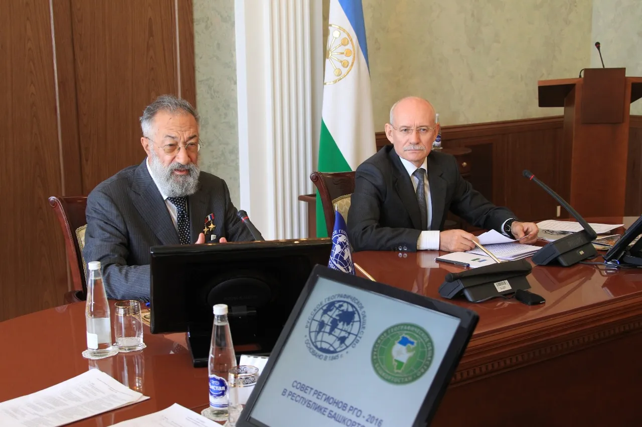 UFA, 8 June 2016. /Bashinform News Agency, Alexander Smirnov/. On June 7, the Head of Bashkortostan Republic Rustem Khamitov delivered a speech at a visiting session of the Regional Council of the Russian Geographical Society (RGS). It was attended by the First Vice-President of the Society Artur Chilingarov.