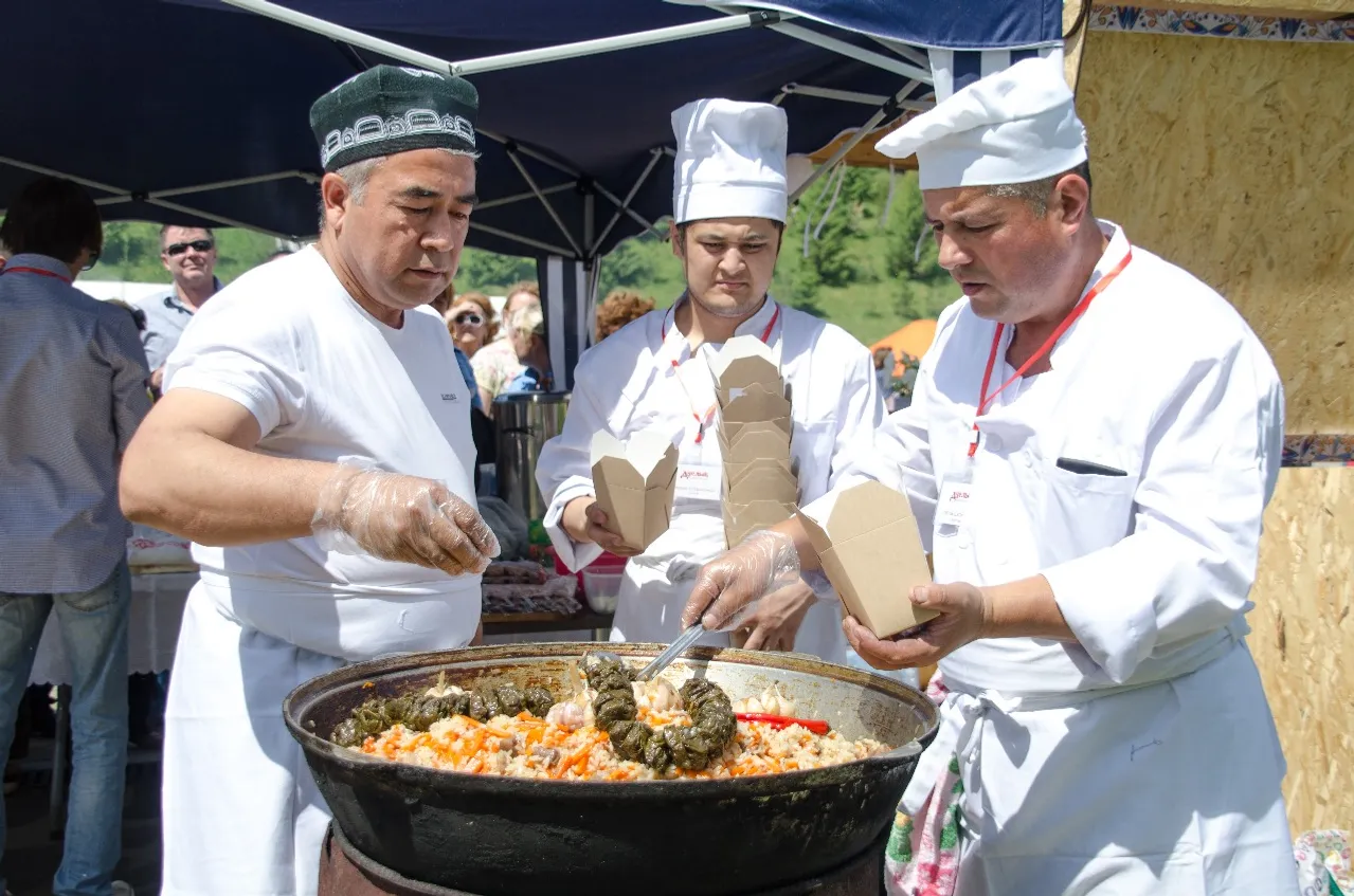 The culinary festival was attended by 15 teams, masters of cooking of one of the most popular oriental dishes. Among the participants of the competition were the trustee of Markhamat Foundation Gulshat Khamitova, the Minister of Youth and Sports of Bashkortostan Andrey Ivanyuta, the Deputy Prime Minister of the Government RB Dmitry Sharonov, the Minister of Labour and Social Protection Lenara Ivanova, the Minister of Culture Amina Shafikova, director of the Bashkir Opera and Ballet Theatre Ilmar Almukhametov.