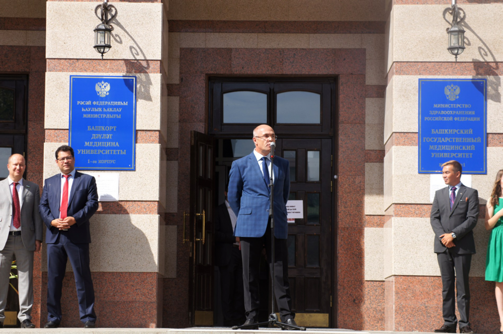 UFA, 2 September 2016. /Bashinform News Agency, Elmira Sabirova/. This academic year, over one thousand freshmen will study at Bashkir State Medical University. The Deputy Prime Minister of the Government RB Salavat Sagitov, the republican Health Minister Anvar Bakirov and the Rector of Bashkir State Medical University Valentin Pavlov congratulated them on the beginning of their studies.