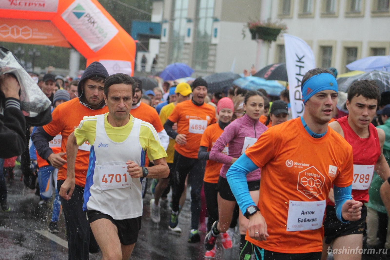 UFA, 13 September 2016. /Bashinform News Agency, Dmitry Slezin/. The II Ufa International Marathon took place in the capital of Bashkortostan on September 11. It was attended by 2653 athletes. All day the rain was pouring down and the start of International Marathon-2016 was accompanied by a strong downpour.