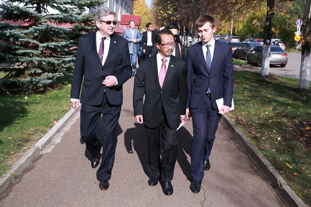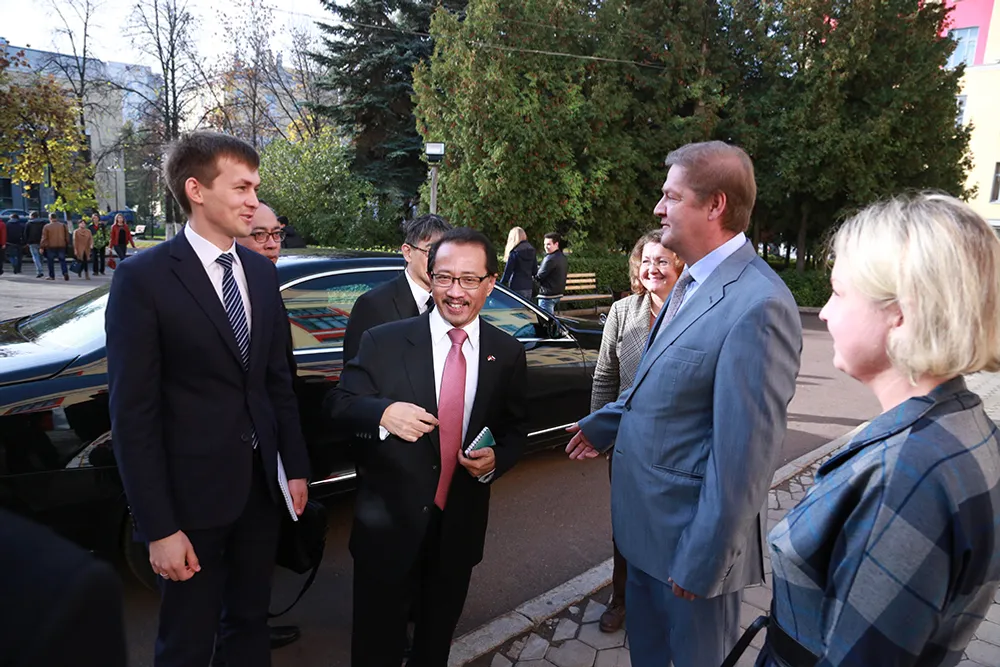 UFA, 6 October 2016. /Bashinform News Agency, Elmira Sabirova/. On October 5, Ufa State Petroleum Technological University (USPTU) was visited by the Ambassador Extraordinary and Plenipotentiary of the Republic of Indonesia Mohammad Wahid Supriyadi. The delegation also included the authorized ministers Kiki Tjahjo Kusprabovo (also known as the coordinator of the Economic Department) and Darmawan Suparno (coordinator of the Department of Socio-Cultural Relations).