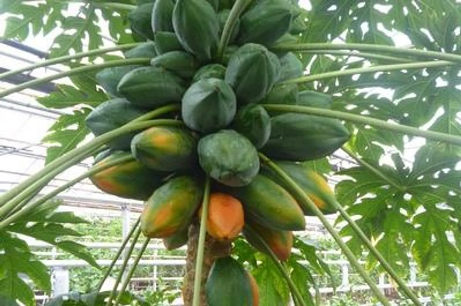 Ripe tropical papaya is grown at Ufa Limonarium green house