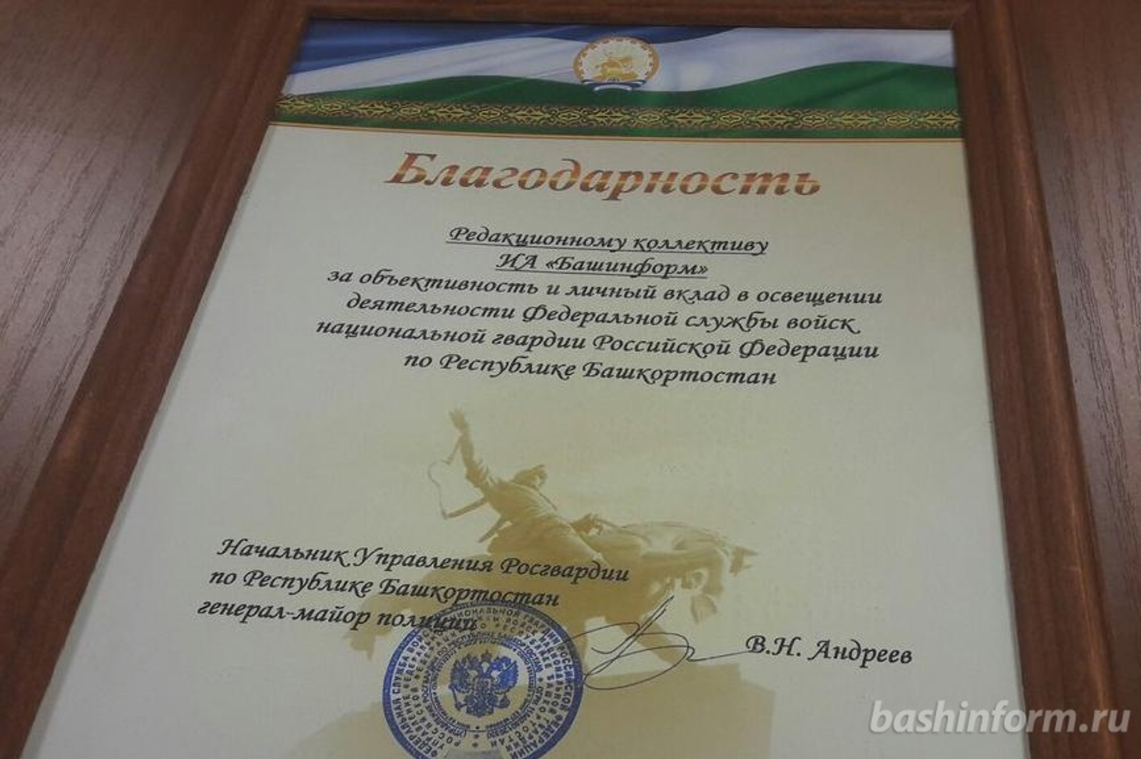 Bashinform News Agency was given letter of gratitude for objectivity in covering Rosgvardiya activities