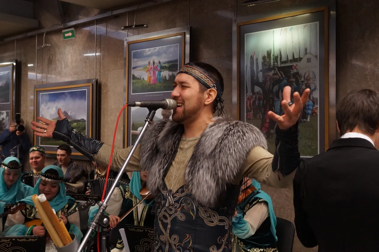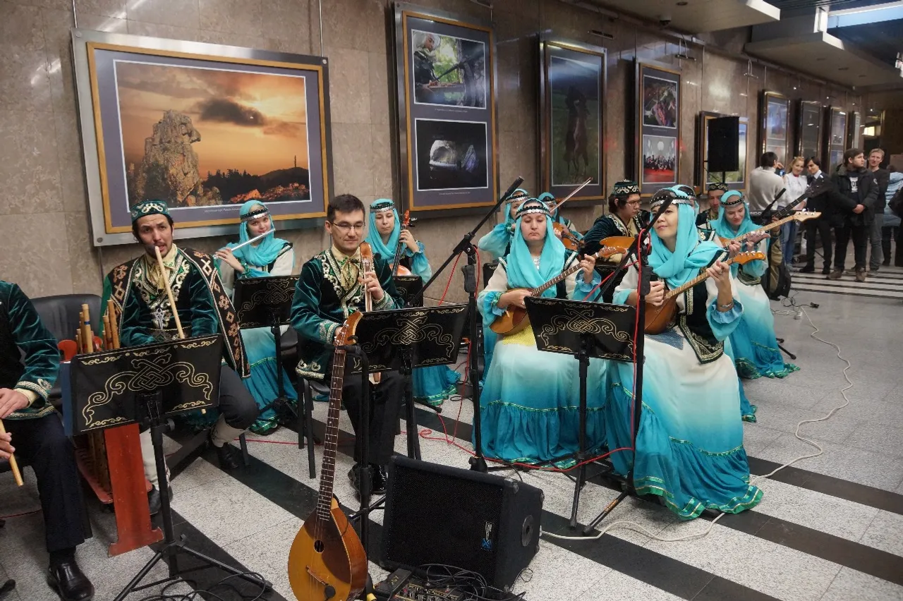UFA, 22 December 2016. /Bashinform News Agency, Leila Aralbaeva/. A large-scale photo exhibition about Bashkortostan opened in Moscow "Metro" gallery at Vystavochnaya station, which brought together the most picturesque images of photographers from six countries - Russia, Italy, India, Iran, Kazakhstan and Turkey. Its opening was accompanied by a spectacular hour-and-a-half ethnic music concert "Kurai Celebration " performed by the National Orchestra of Folk Instruments RB and the "Argymak" ethno-rock band from Ufa. The event became a part of a bright two-day presentation of the tourist potential of our republic in Moscow.