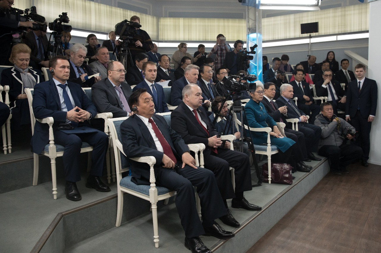 The meeting was attended by the Chairman of the Federation Council Valentina Matvienko, the Chairman of the Standing Committee of the National People's Congress of China, Zhang Dejiang, the Chairman of the Russian-Chinese Friendship Society Dmitry Mezentsev, leaders and representatives of regions actively interacting with China.