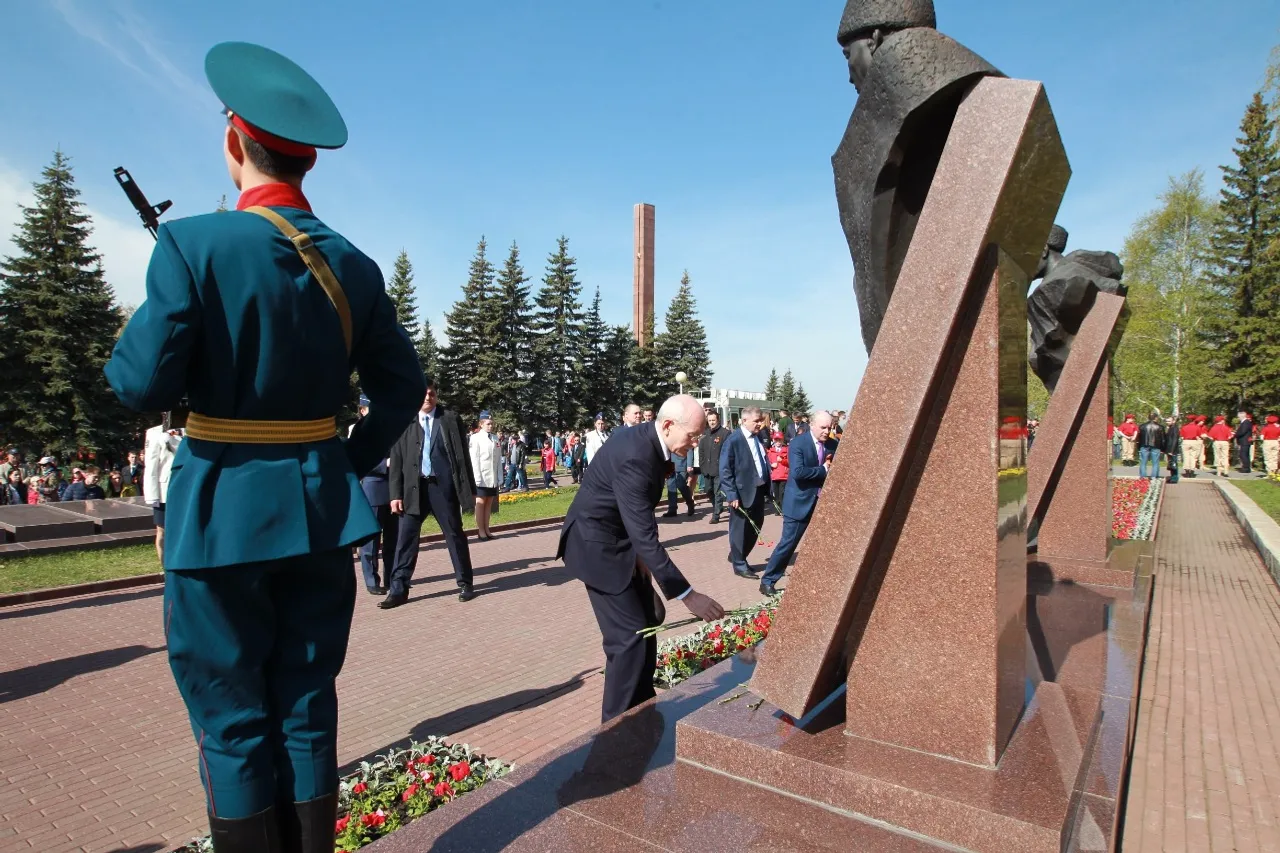 The Head of the Republic laid flowers to the monument to the Heroes of the Soviet Union Alexander Matrosov and Minnigali Gubaidullin, at the foot of which there was the Eternal Flame.