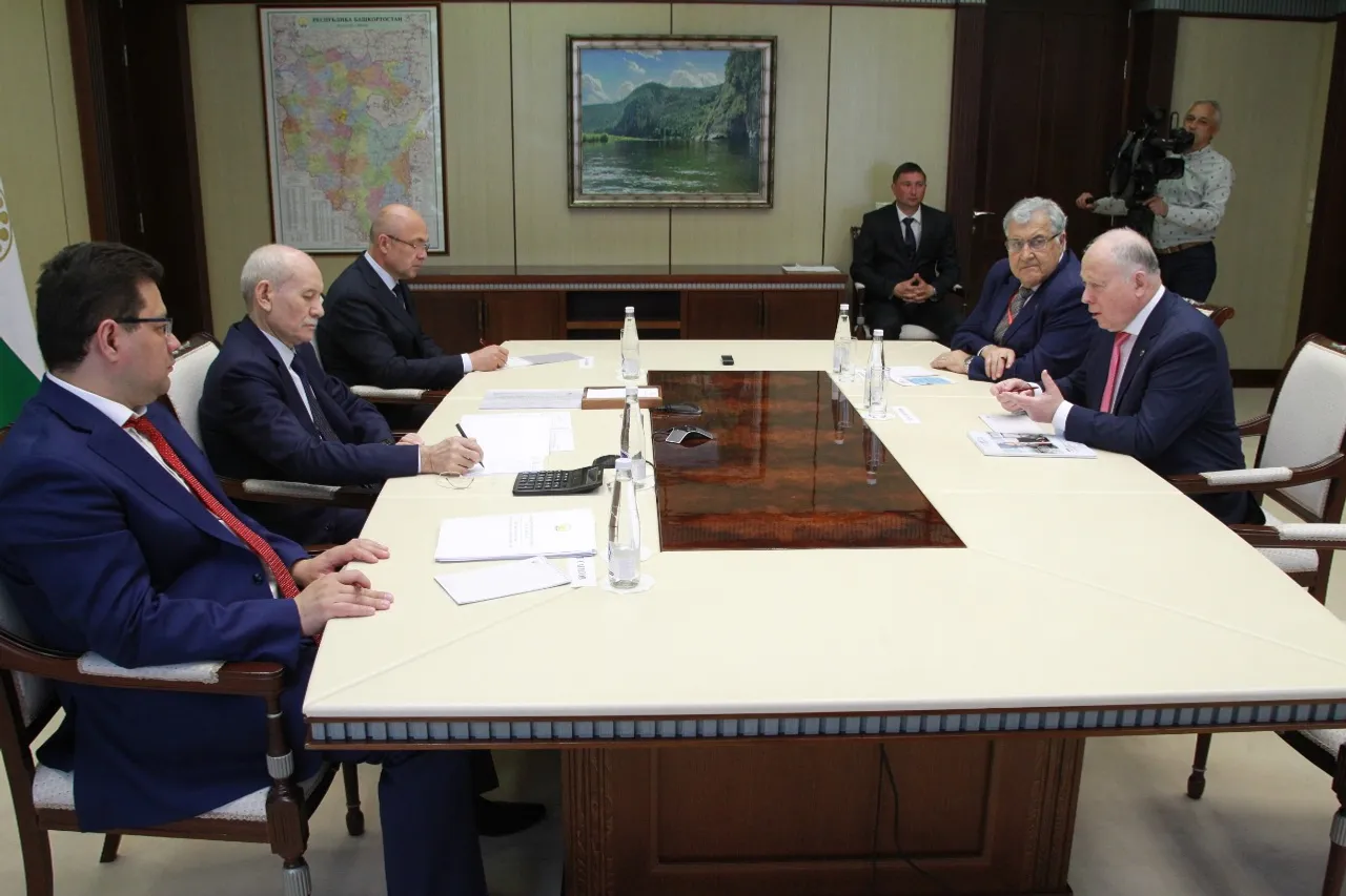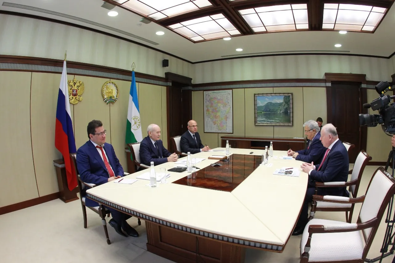 UFA, 31 May 2017. /Bashinform News Agency/. The Head of Bashkortostan Rustem Khamitov met with the president of the National Health Resort Association Alexander Razumov and the president of the World Federation of Hydrotherapy and Climatotherapy (FEMTEC) Umberto Solimen who take part in the All-Russian forum "Health Resort-2017" in Ufa. The meeting discussed issues of modernization of the sanatorium and health resort industry, improving the efficiency of the republican health resorts.