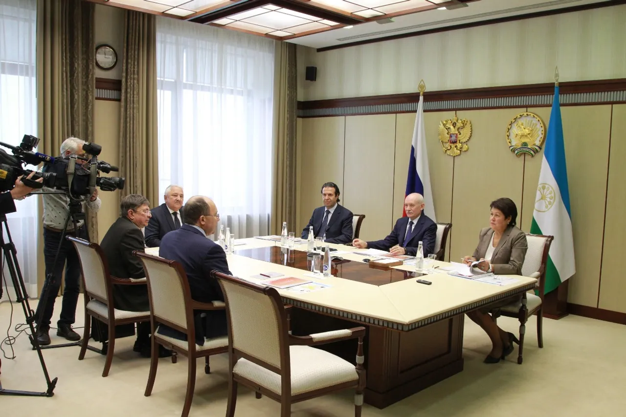 UFA, 31 May 2017. /Bashinform News Agency/. The Head of Bashkortostan Rustem Khamitov met with the head of the Federal Agency for Tourism Oleg Safonov. The parties discussed the prospects for the development of tourist and recreational clusters in the region, strengthening the potential of sanatorium and resort industry.
