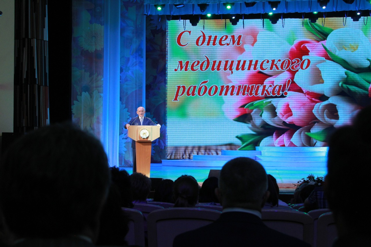 UFA, 16 June 2017. /Bashinform News Agency/. By the 100th anniversary of Bashkortostan, 14 health facilities will be built and modernized in the republic. This was announced by the Head of the Region Rustem Khamitov in his speech at a solemn meeting dedicated to the Medical Worker Day.