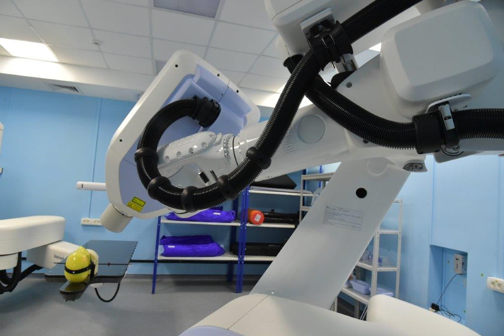 The guests visited the operating room with a cyber-knife - a unique device capable of affecting tumors with gamma radiation with an accuracy of 0.1 mm. Doctors of the Centre told that the cyber-knife device is one of the newest ones delivered to Russia, with a system of 3D planning and a system for assessing the quality of planning.