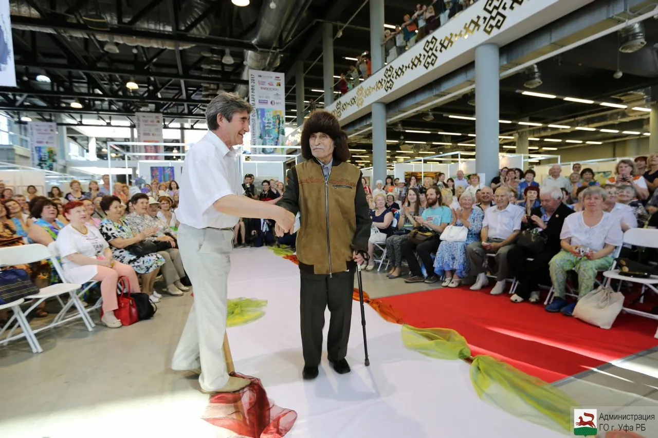 UFA, 21 July 2017. /Bashinform News Agency, Gulfiya Akulova/. The "Podium of Mature Beauty" in Ufa was attended by a 99-year veteran, the Honoured Artist of the BASSR Kashfelgil Gadelshin. The show with the participation of models older than 50 years was held in the capital for the first time. It was organized by the Ufa City Council of War, Labour, Armed Forces and Law Enforcement Veterans, Elena Lukmanova's Academy of Model Business with the support of the administration of the capital.