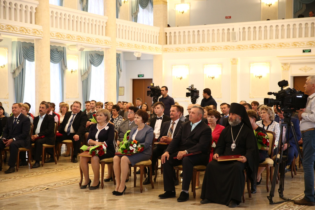 UFA, 7 September 2017. /Bashinform News Agency/. The Head of Bashkortostan Rustem Khamitov handed over state awards of the Russian Federation and the Republic of Bashkortostan. The professional achievements of 56 workers of industry, construction, housing and communal services and forestry, public service, municipal administration, health, education and science, culture, physical culture and sports, press and media, as well as public and religious figures were marked with orders, honorary diplomas and titles.