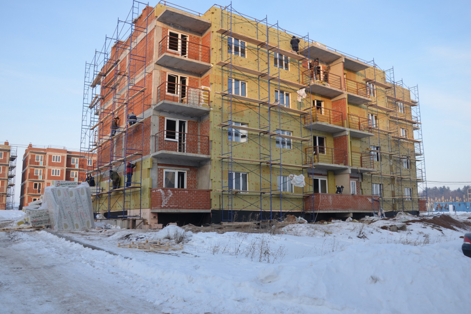 She said that at present about 350 apartments are occupied, but people, in fact, live in the construction site. There are no communications, no infrastructure, no garbage collection, no even cellular communication there.