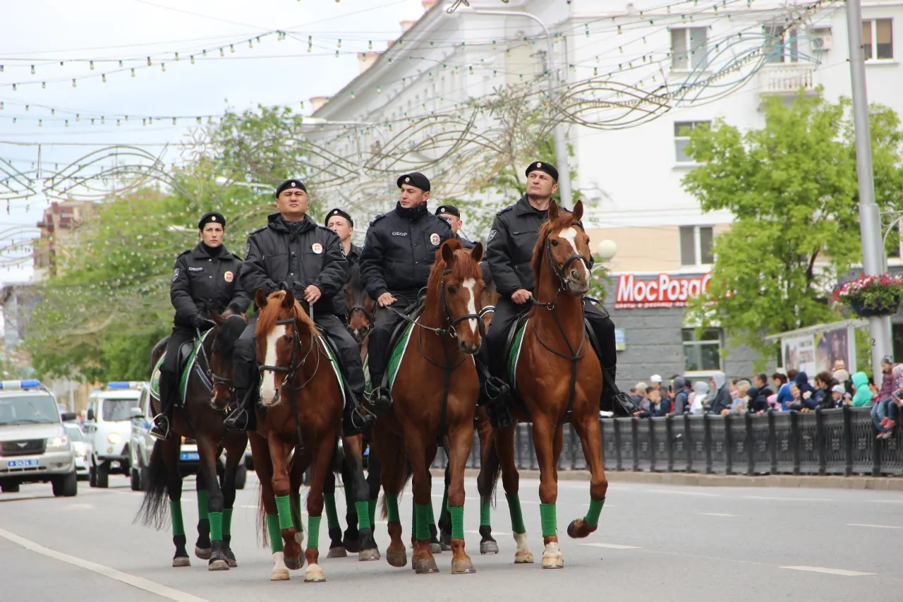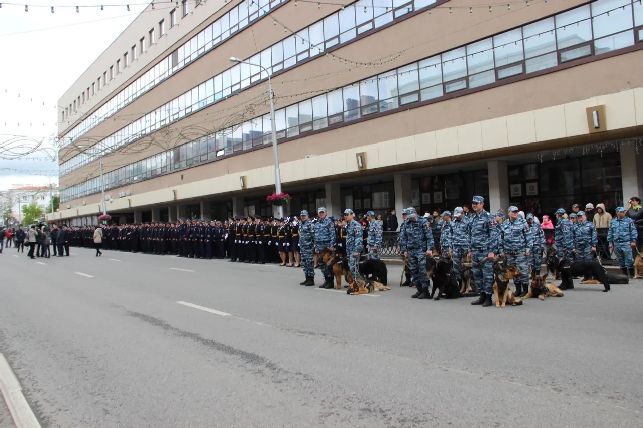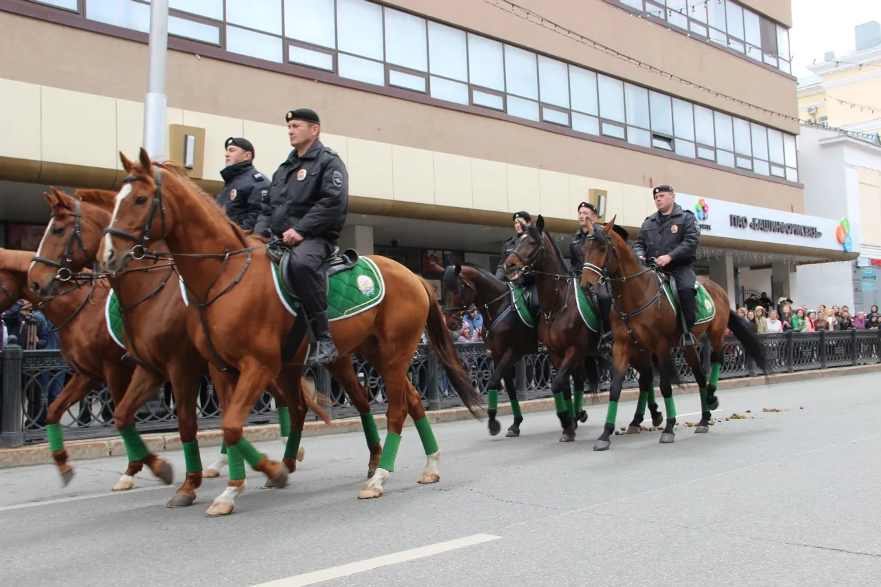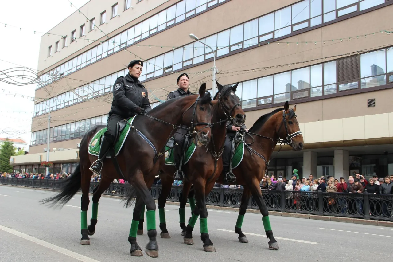 According to the ministry, about 350 employees of the Ministry of Internal Affairs for Bashkortostan and the city police, 29 cars, about 50 dog handlers and a cavalry platoon of the Ufa Regiment patrol and guard service took part in the parade.