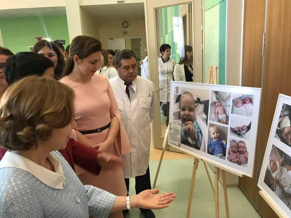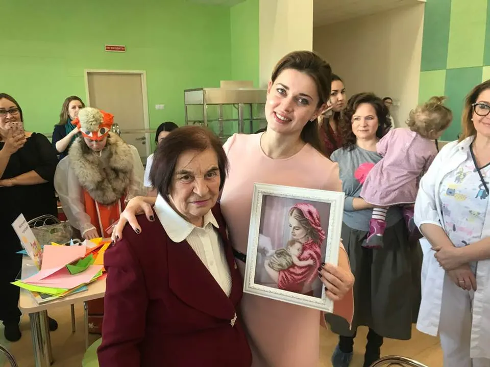 UFA, 15 November 2018. /Bashinform News Agency/ translated by Tatiana Aksyutina/. The wife of the head of Bashkiria, Karine Khabirova, visited the Republican Perinatal Clinical Center in Ufa. This was posted by Rustem Ahmadinurov on his page on the social network. The visit was timed to the World Prematurity Day. Karine Khabirova met with doctors and young mothers, as well as with “silver age” volunteers who make warm things for the kids. They presented a picture embroidered with beads to the first lady of the republic.
