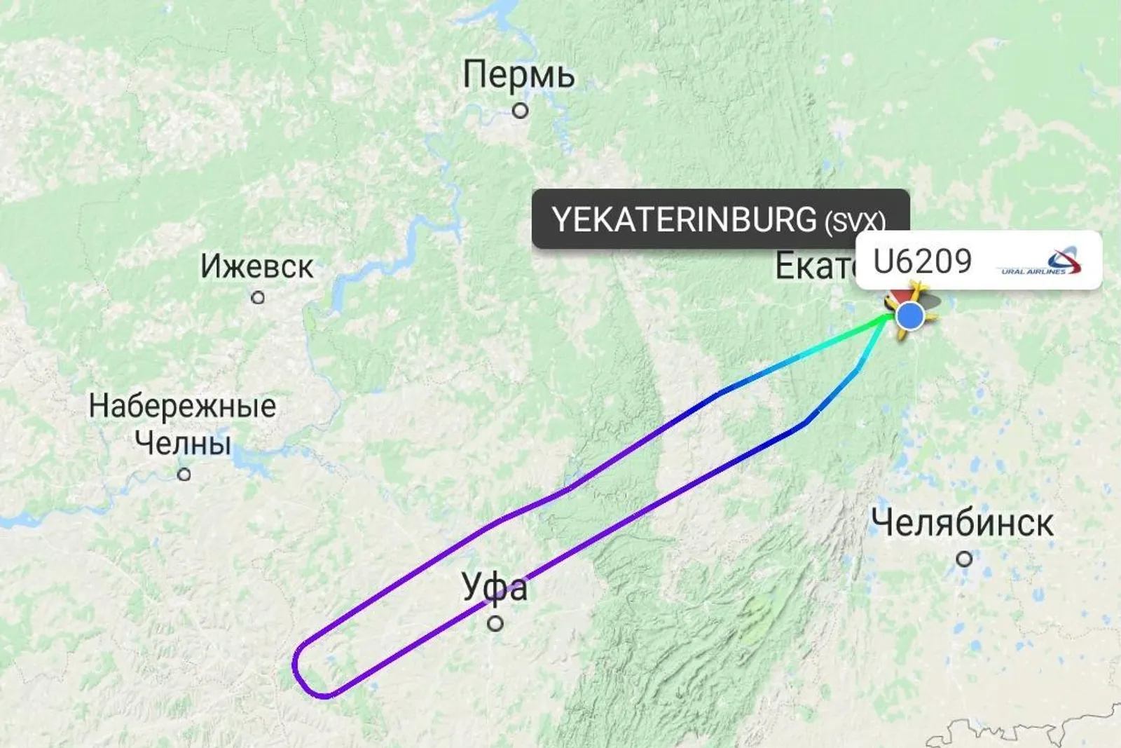 According to the Yekaterinburg mass media, the passengers of the Airbus A32 were announced that they were now above the capital of Bashkiria and had to return to Koltsovo airport.
