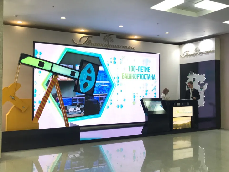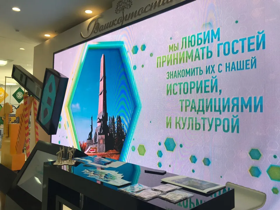 The delegates learned about investment opportunities and the industrial potential of Bashkortostan at a special exhibition stand. It consisted of a presentation screen on which videos of the 100th anniversary of the Republic of Bashkortostan and the socio-economic achievements of the region were shown.