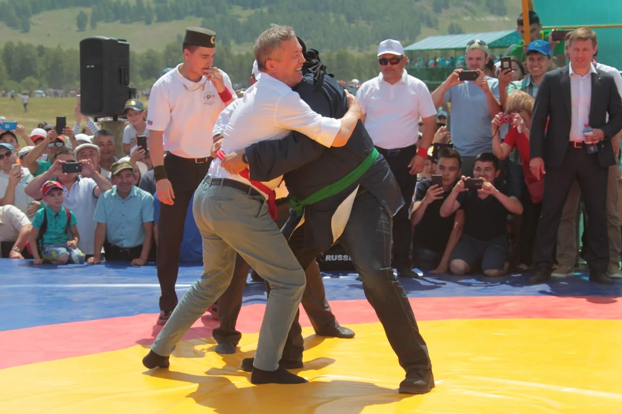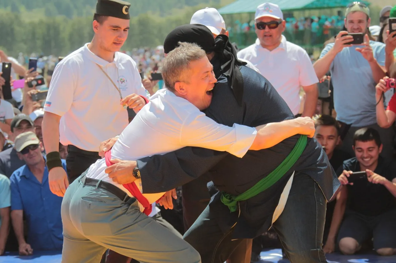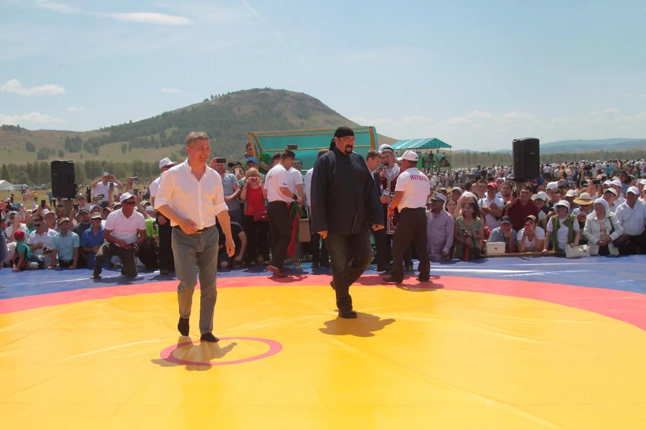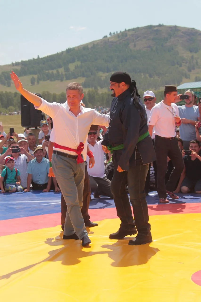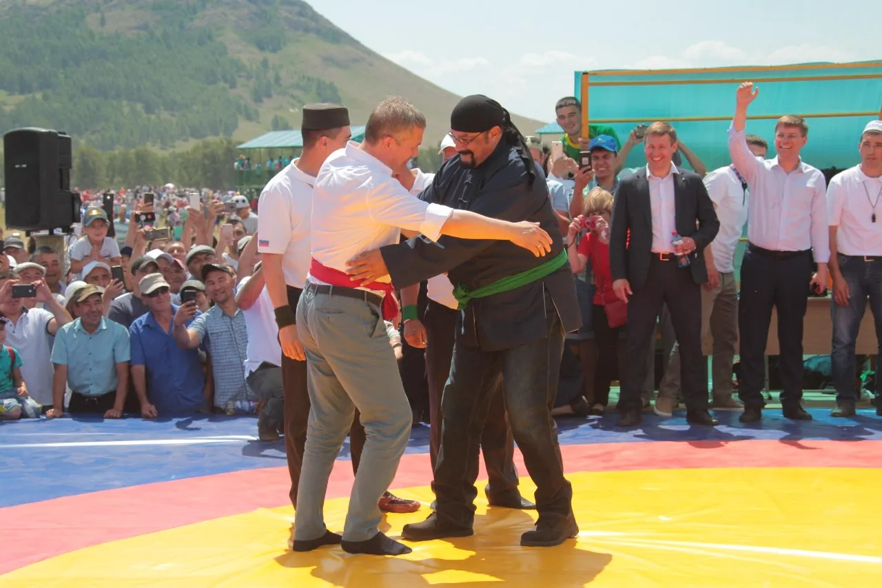The Acting Head of Bashkiria Radiy Khabirov gave a master class in national kuresh wrestling (belt wrestling) to a famous Hollywood actor, martial arts master Steven Seagal at Sabantuy (the plow festival). The festival was held on June 23, in the Abzelilovsky district, near the village of Askarovo at the foot of the Topay mountain as part of the first All-Russian Investment Sabantuy.