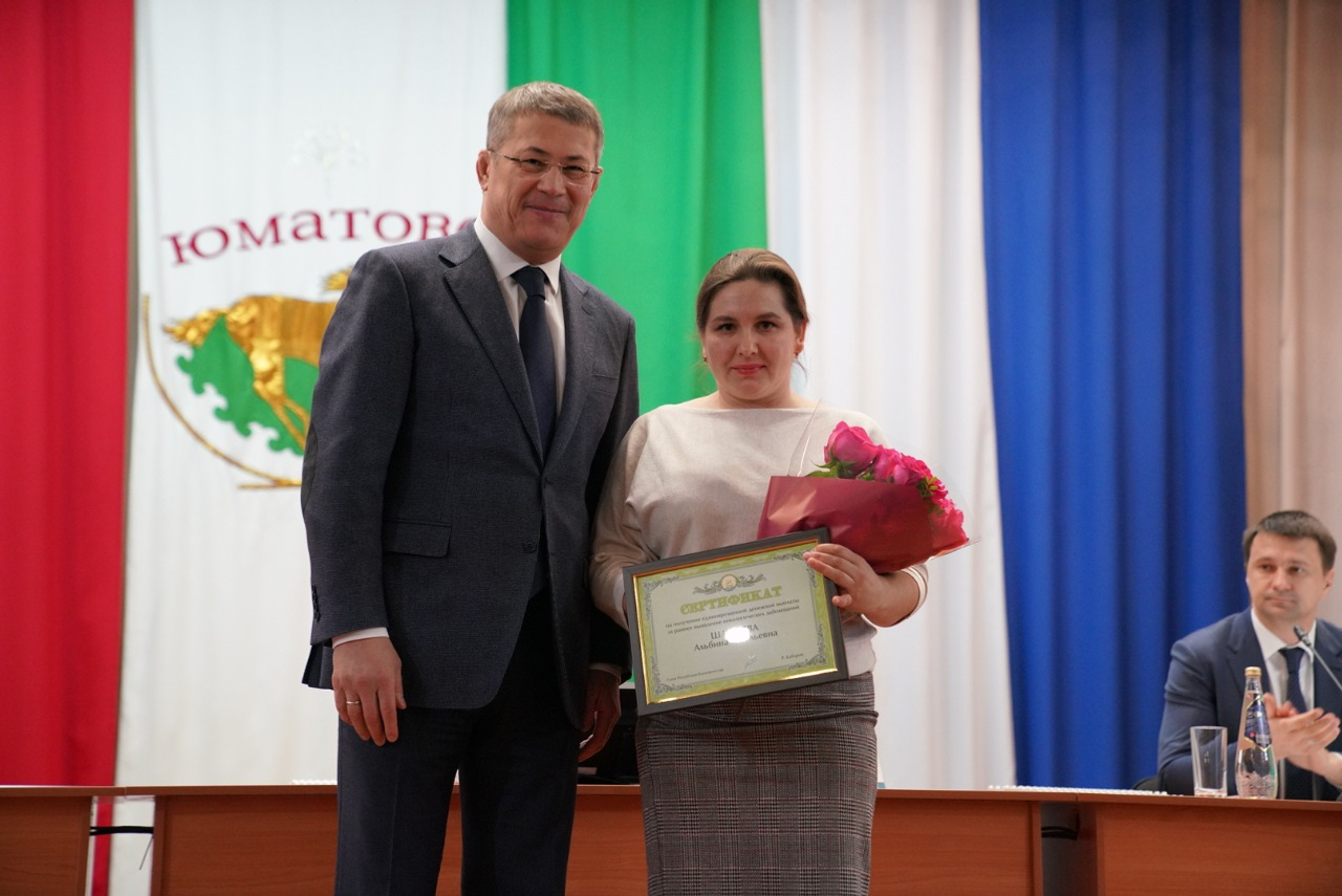 Alfiya Alimgulova, the general practitioner of the Mrakovskaya Central District Hospital, Gulnaz Gabbasova, district general practitioner of the Askinskaya Central District Hospital, Oleg Gareishin, pediatrician of the Belebey Central District Hospital, received cash certificates worth one million rubles from the head of Bashkortostan. Several paramedics who became participants in the Zemsky Paramedic program became holders of certificates for 500 thousand rubles.