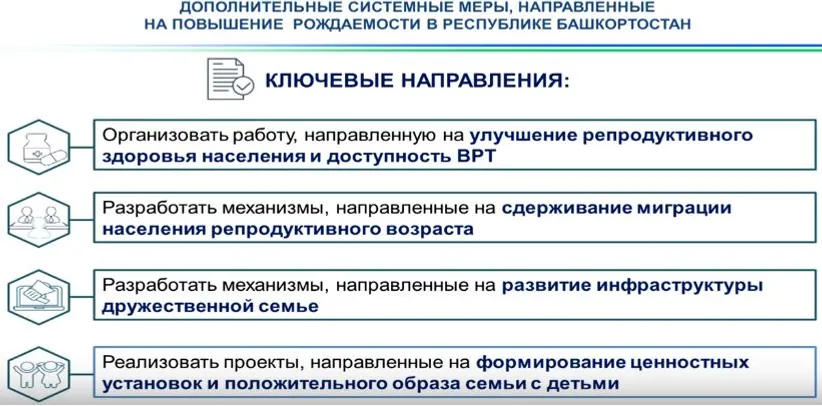 Various measures of state support may increase the birth rate by 8414 in five years. The Deputy Prime Minister for Social Policy Lenara Ivanova presented a road map to improve the demographic situation at a government briefing session.