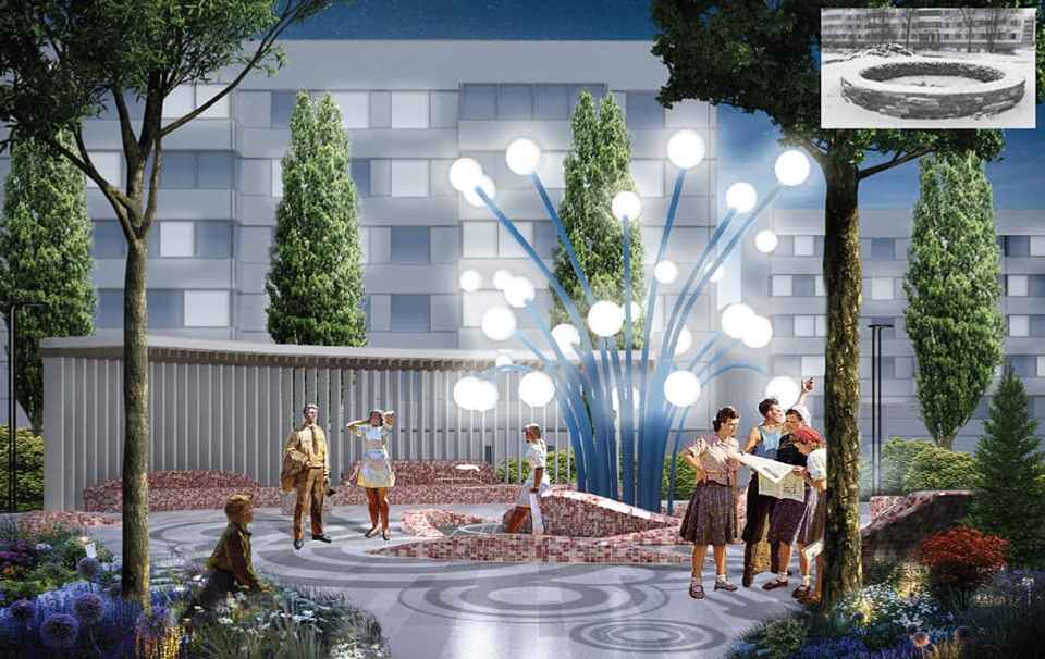 The "Volny Agideli" public space is being created in the center of Agidel in the style of Soviet modernism. This project, among five others from the Institute for the Development of Bashkortostan Cities, received a federal grant of 45 million rubles. The Head of Bashkortostan Radiy Khabirov made a post about it in his social media.