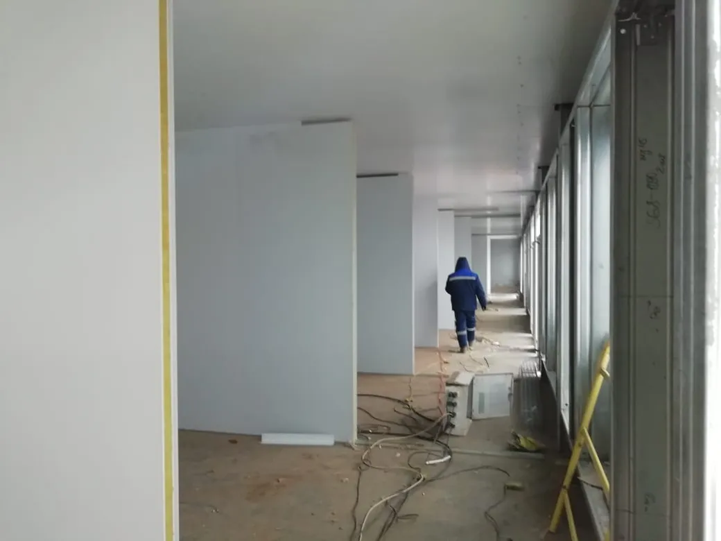 The builders of the new COVID hospital in Sterlitamak are completing the installation of heating, ventilation, and water supply systems in all buildings of the future hospital. A bypass road is being constructed, and the roadway and pedestrian sidewalks are being arranged in the territory of the infectious disease hospital.