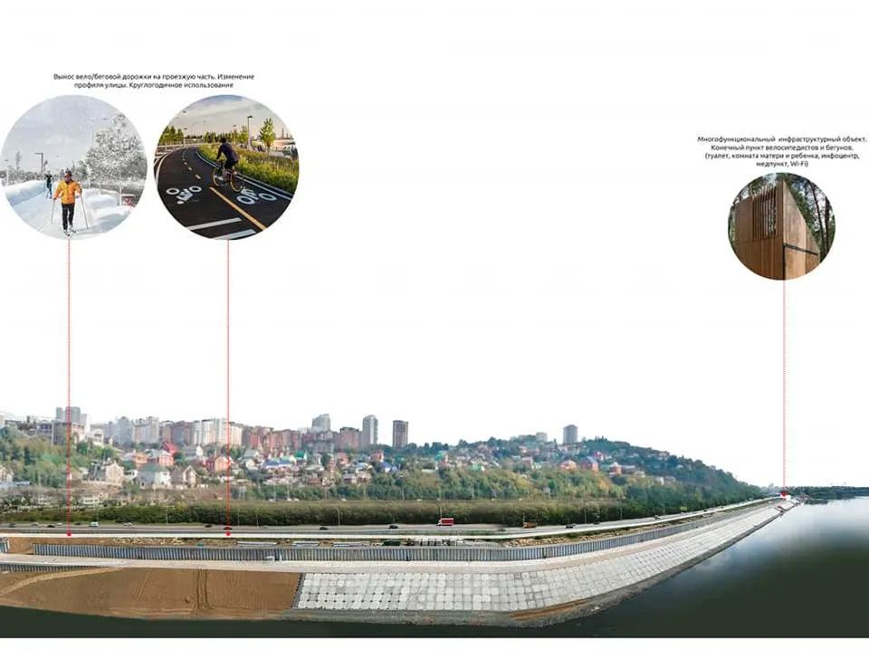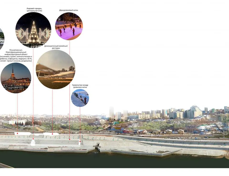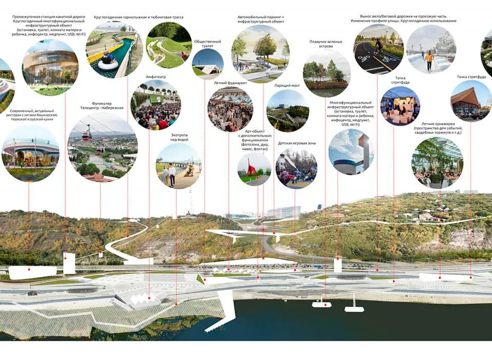 Much attention in the development of this area is supposed to be paid to sports. The author of the concept believes that an entire sports cluster can be created on the embankment, including grounds for mini-football, hockey, and volleyball. In their development, he counts on the help of professional sports clubs: FC "Ufa", HC "Salavat Yulaev", as well as on support from major sports brands.