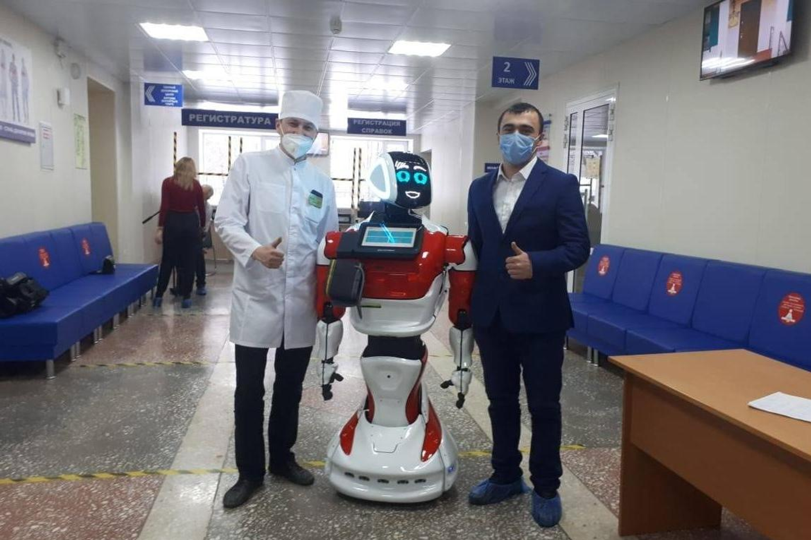 A smart assistant named Donnie (from the word "donation") meets donors, communicates with them, learns contact details, recommends putting on shoe covers and a mask, and taking off outerwear. It will also be able to measure the donor's body temperature, blood pressure, pulse, height, and weight.