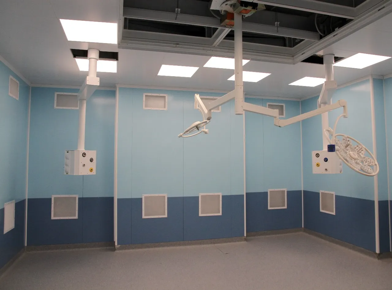 The hospital's total capacity is 70 isolated wards, including 60 wards for round-the-clock stay (40 for adults and 20 for children) and 14 intensive care wards. The number of beds in normal operation is 74. Additionally, 260 beds can be placed, up to 350 beds with 100% oxygen connection can be deployed in case of emergency. The infectious disease department will be equipped with individual wards with access to the street with two chambers and sanitary facilities, including a shower cabin, a toilet bowl, a washbasin, with oxygen supply. The center will also include the admission and diagnostic department (including rooms for computed tomography, endoscopy, ultrasound diagnostics, functional diagnostics, and an X-ray room). There will also be the maternity and children's departments, surgical unit.