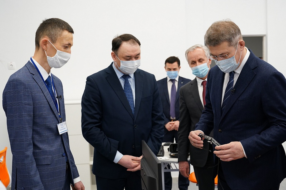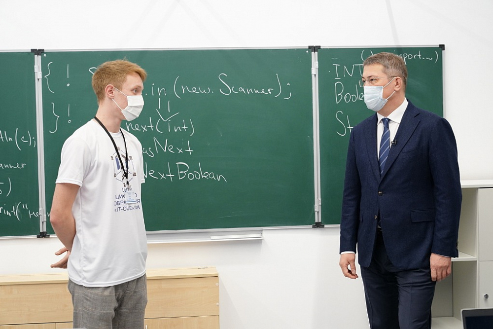 Radiy Khabirov toured the laboratories of programming in Java and Python, cyber-hygiene, system administration, mobile development, and virtual reality, talked with students and teachers.