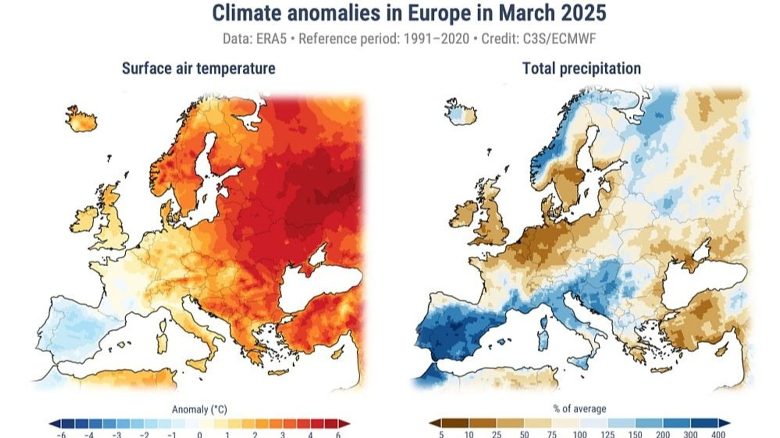 Meteovesti reports that March 2025 was the warmest in recorded history in Europe and the second warmest in the world. March also saw the lowest sea ice extent in the data set since 1979.
