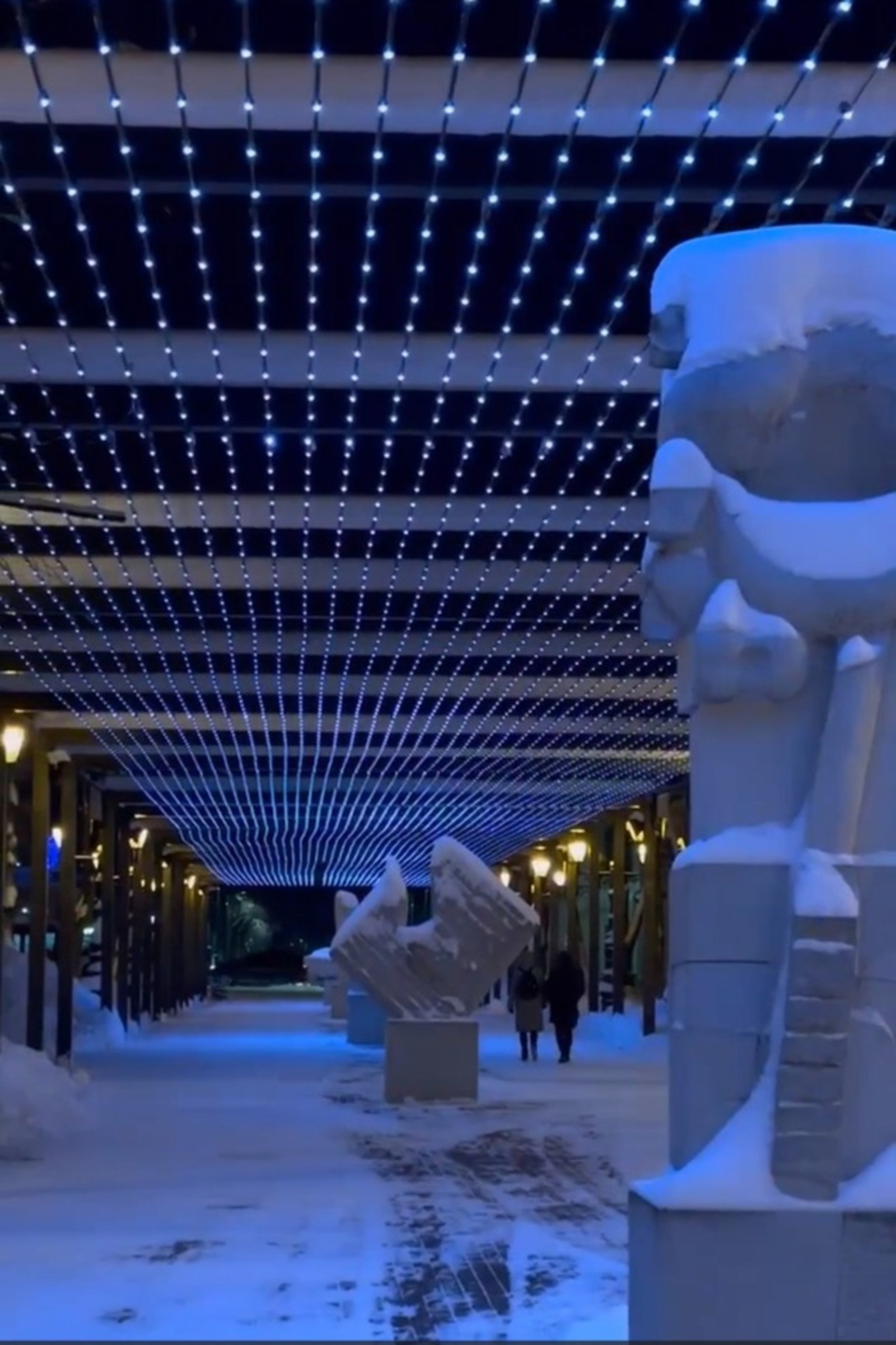 Employees of UfaGorsvet have created a festive atmosphere in the historic center of the Bashkir capital. Decorative lighting has been installed along the ArtTerria alley of modern urban sculpture. The illumination is accompanied by music.