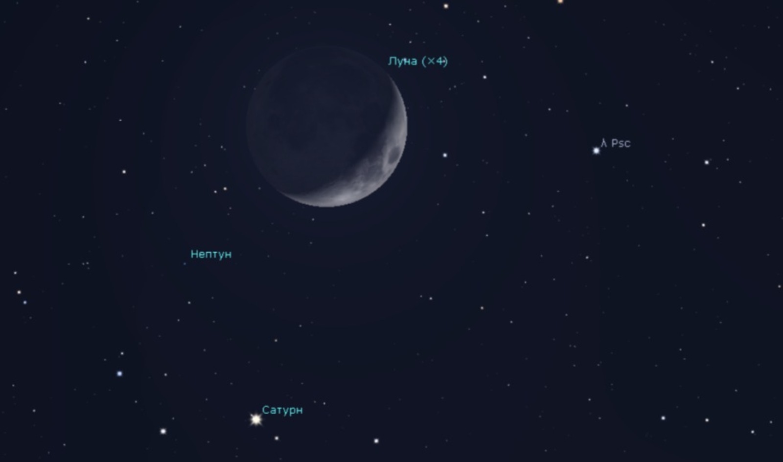 Both celestial bodies will be located in the constellation Pisces and will set below the horizon before midnight: Saturn at 10:48 p.m., with the Moon following 20 minutes later.
