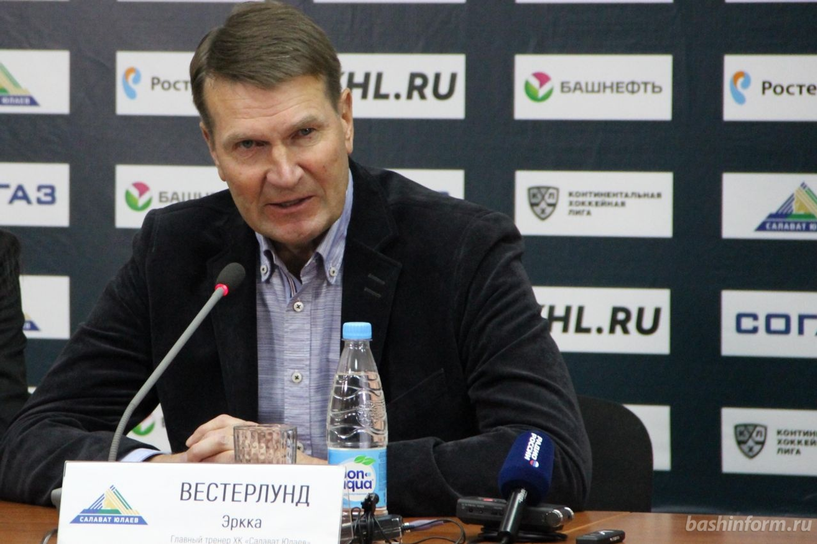 UFA, 19 April 2017. /Bashinform News Agency, Dmitry Slezin/. "I want to learn a few Russian words. In general, I want to attract specialists with fluent English, in order to understand each other better in my team," said the new coach of the Ufa Salavat Yulaev Erkka Westerlund at his first press conference in Ufa.