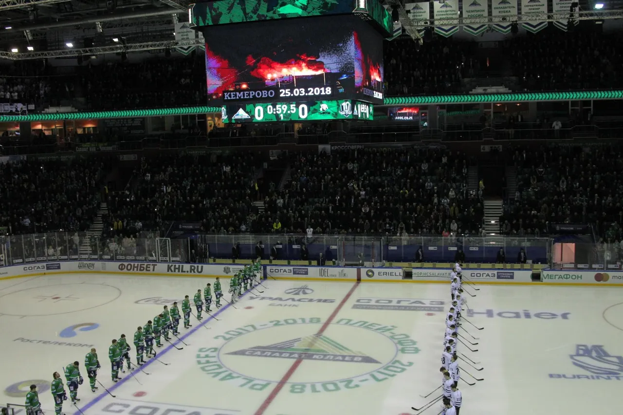 UFA, 28 March 2018. /Bashinform News Agency, Daria Petrova/. The decisive, seventh game of the series between the Ufa Salavat Yulaev and Chelyabinsk Traktor began with a minute of silence in memory of the victims of the fire that occurred in Kemerovo.