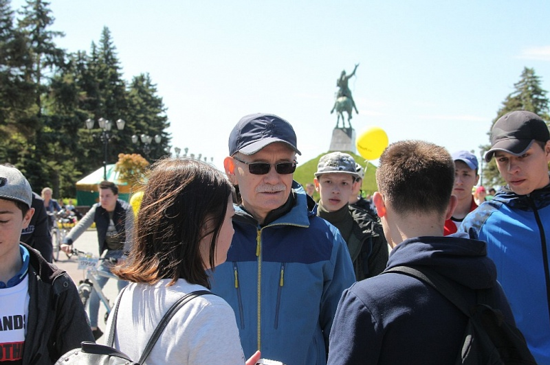 UFA, 28 May 2018. /Bashinform News Agency, Elmira Sabirova/ translated by Tatiana Aksyutina/. The Head of Bashkortostan Rustem Khamitov supported the All-Russian Day of Bicycle Parades. On Sunday, May 27, he took part in the "1000 Cyclists Day" sports festival.