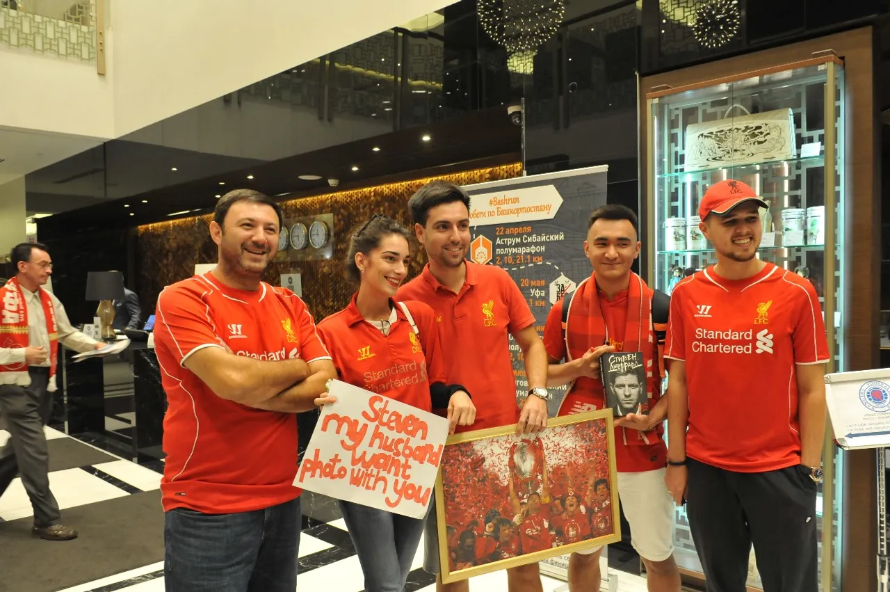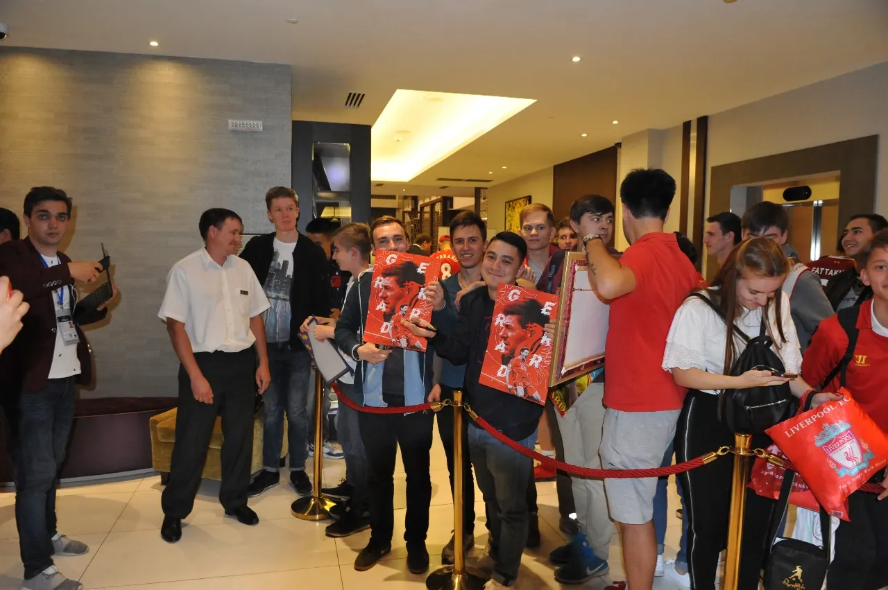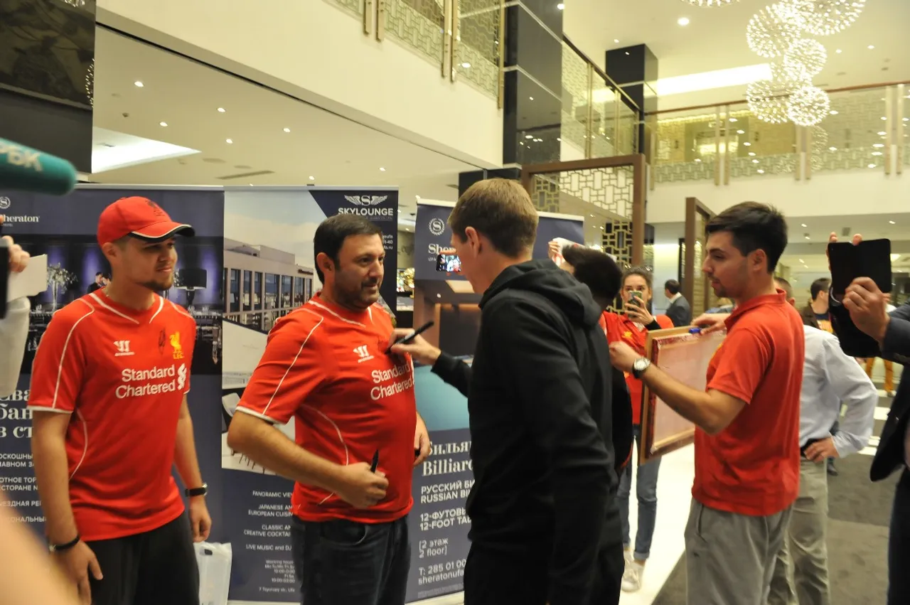 After the press conference, the personal fans of Steven Gerrard managed to take autographs from the legend of the English football, waiting for him with posters, T-shirts and other attributes of the Liverpool team.