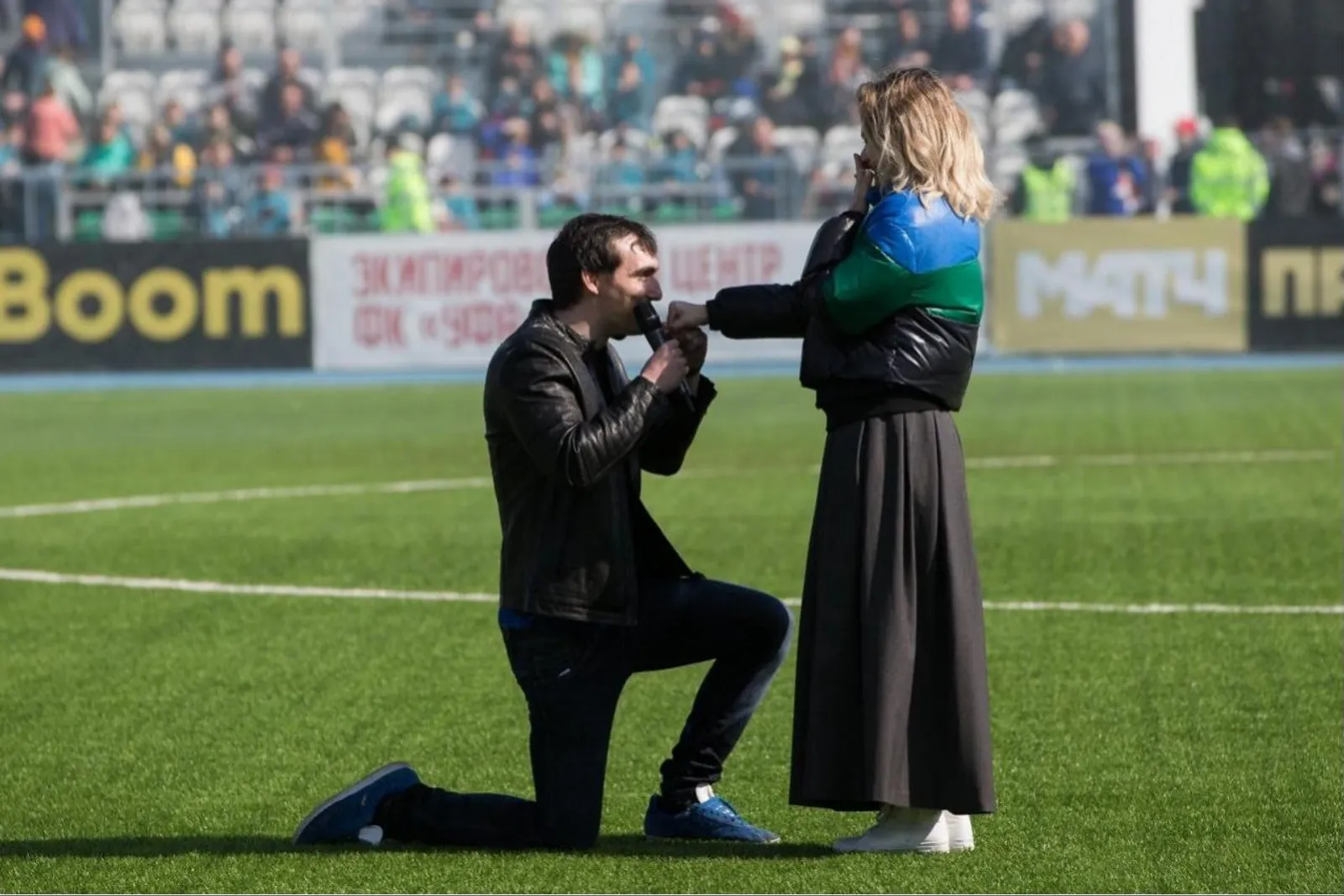 On April 7, during a break in the match of the 22nd round of Russian Premier League Ufa - Rostov, a guy with a microphone came out to the field of the Neftyanik stadium. It turned out that it was Welsh football player of the Carmarthen Town team David Williams. He popped the question to the Ufa resident Yana on the stadium with an audience of 10,000 people. Love won - she said yes.