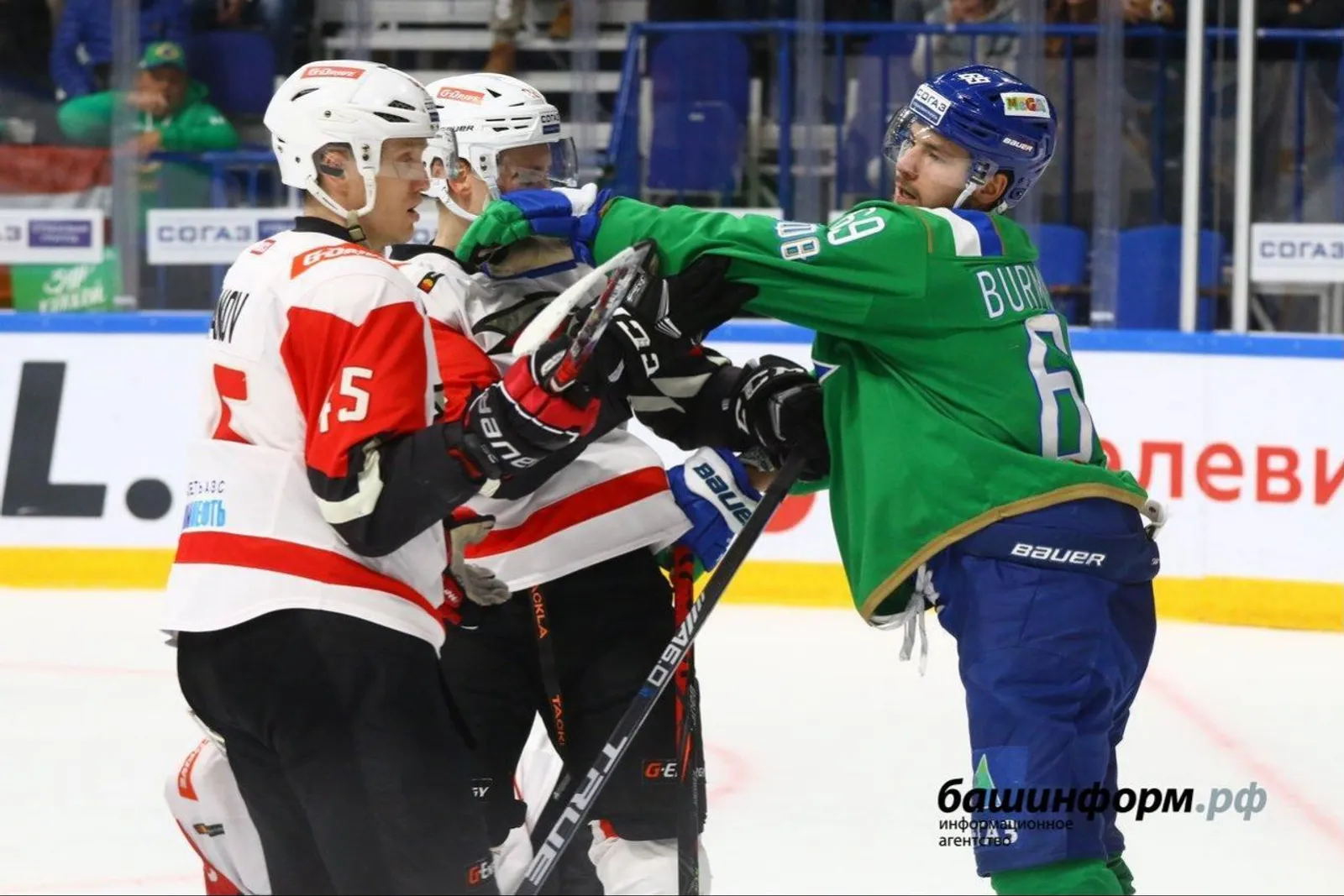 The first match of the Salavat Yulaev playoff series - Avangard started in Balashikha. Guests from Bashkiria, with the support of the "green sector," the republic and Ufa players, were the first to score in this match. Kugryshev, Burmistrov, and Omark demonstrated a good play. The Swedish forward turned home the pass of two partners and hit already in the empty corner of the Hawks net.