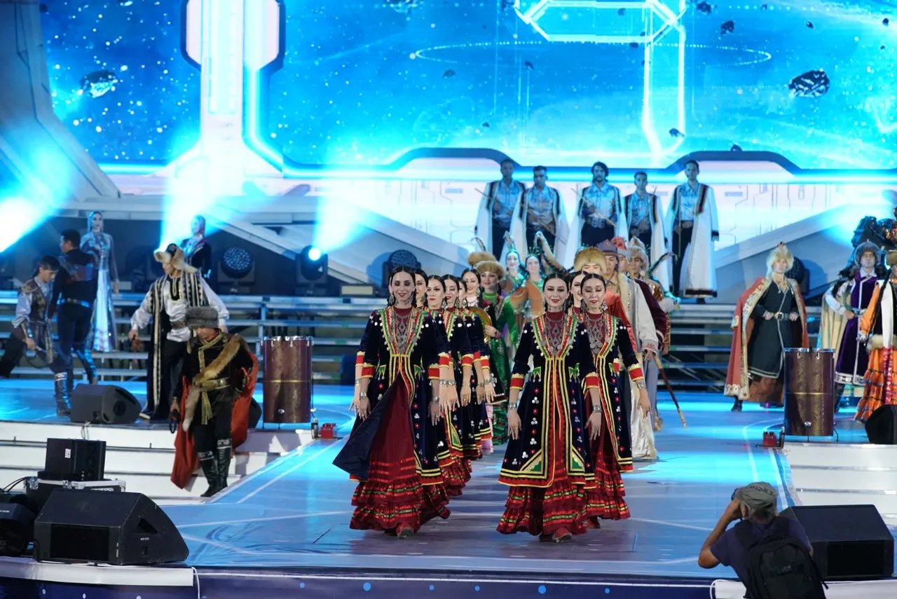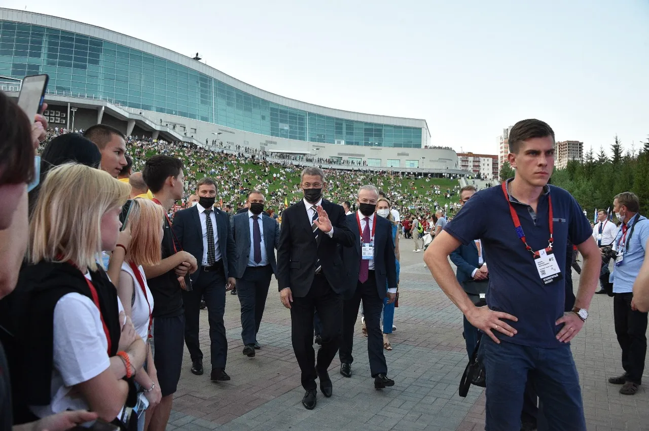 Competitors from 76 regions of Russia were greeted on stage. Several thousand spectators gathered on the slopes of the amphitheater. Air balloons in the sky over Ufa flew over the stage and decorated the ceremony.