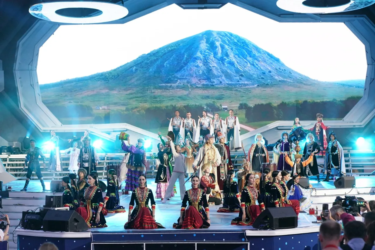 The organizers tried to show the guests the culture of the Bashkir people: a kurai sounded from the stage and artists in national costumes performed. A fire show above the stage accompanied the performance.