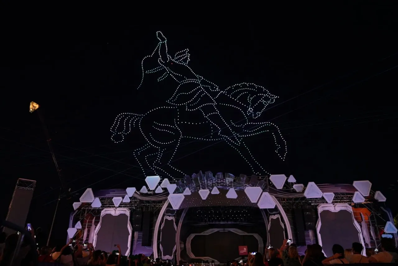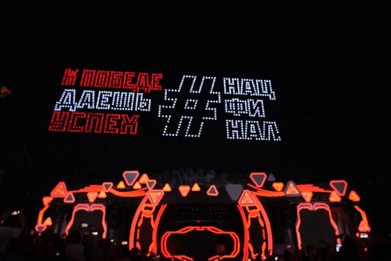 In continuation of the space theme, a thousand drones with LEDs rose into the sky over Ufa. The drones at the height of several tens of meters were lined up in figures and inscriptions of incredible complexity. This is how the monument to Salavat Yulaev "came to life" over the Vatan park, Russia shimmered with multi-colored lights, and Bashkortostan with its coat of arms in the middle sparkled with its native green.